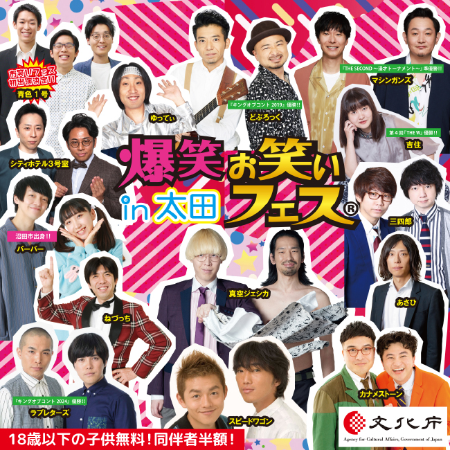 大人気の芸人たちが、 「笑い」を届けにやってくる! 漫才あり!コントあり! 若手芸人から、テレビでおなじみの芸人まで、実力派の精鋭が多数出演!! 当日、ライブ会場で、生の爆笑ステージをお楽しみに!!